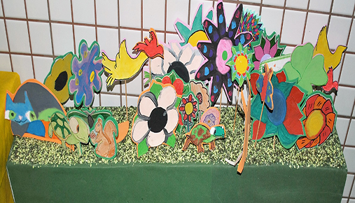Os 7ºs A, B, C e o 9º C, trabalharam com o tema do Outubro Rosa por meio de um jardim artístico.